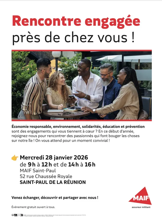 Et pour ça, nous vous invitons à rencontrer les salariés, les militants et les élus de la MAIF, le mercredi 28 janvier 2026 dans votre délégation.