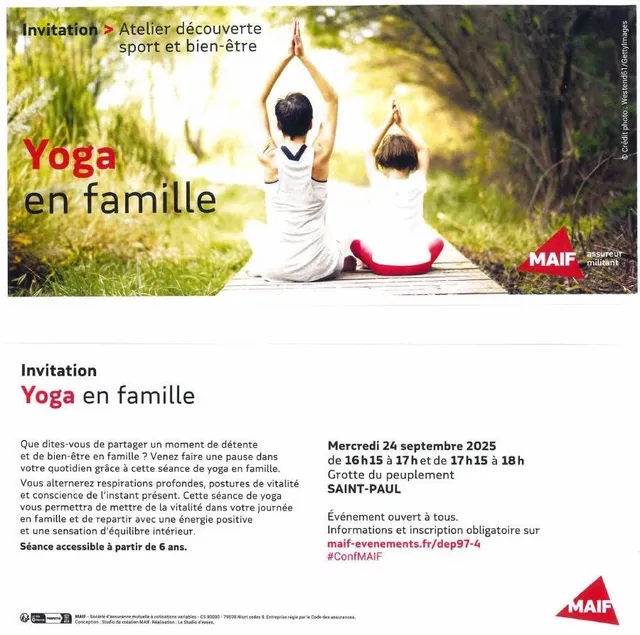 La délégation de Saint-Paul vous propose 2 sessions de Yoga en famille.