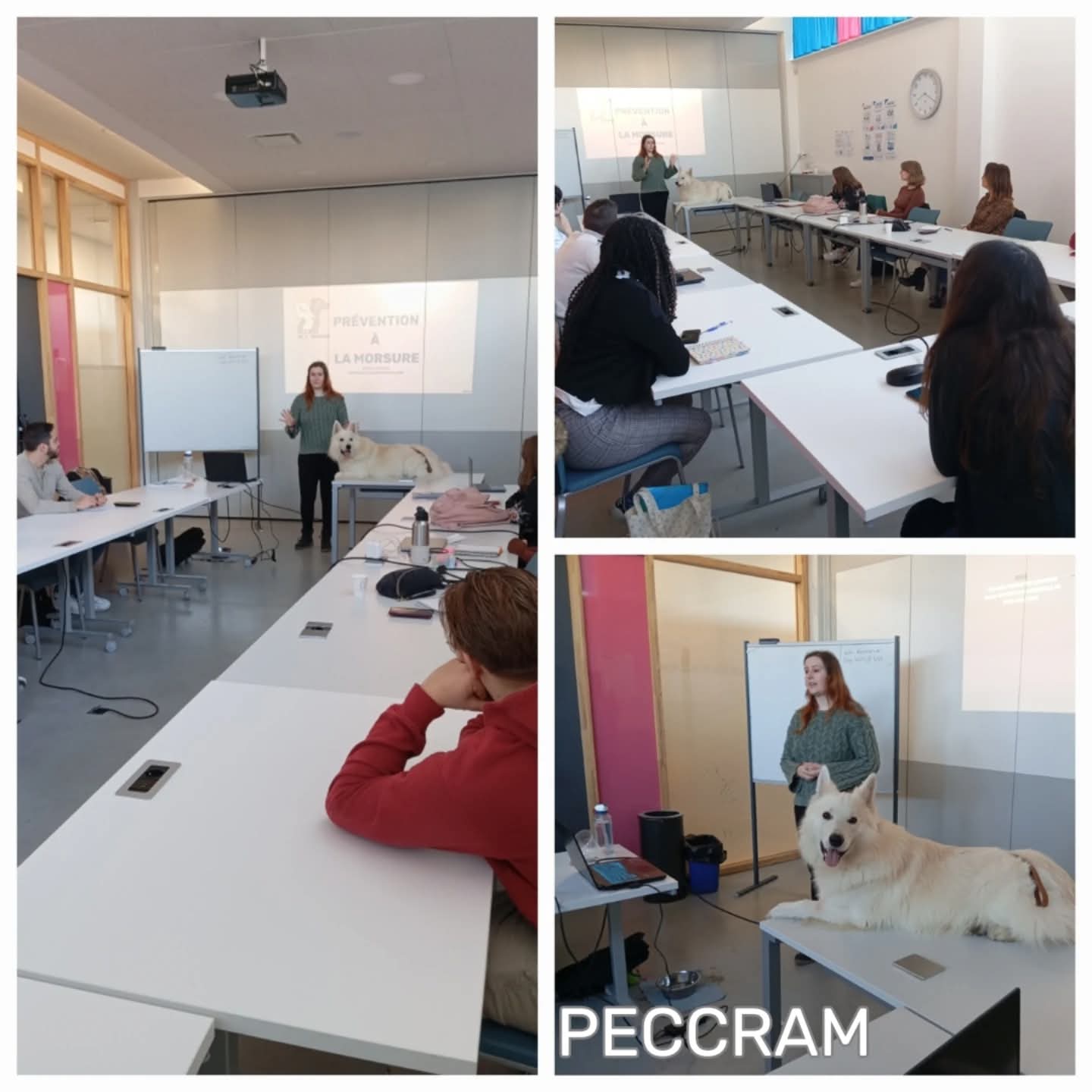 Je suis éducatrice canine et intervenante certifiée PECCRAM (programme d'éducation à la connaissance du chien et au risque d'accident par morsure) Ce programme, reconnu à l'échelle nationale, vise à sensibiliser les enfants à partir de 4 ans au langage canin, pour leur apprendre à intéragir en sécurité avec les chiens, à repérer les signaux d'inconfort ou de stress et à daopter les bons gestes du quotidien.